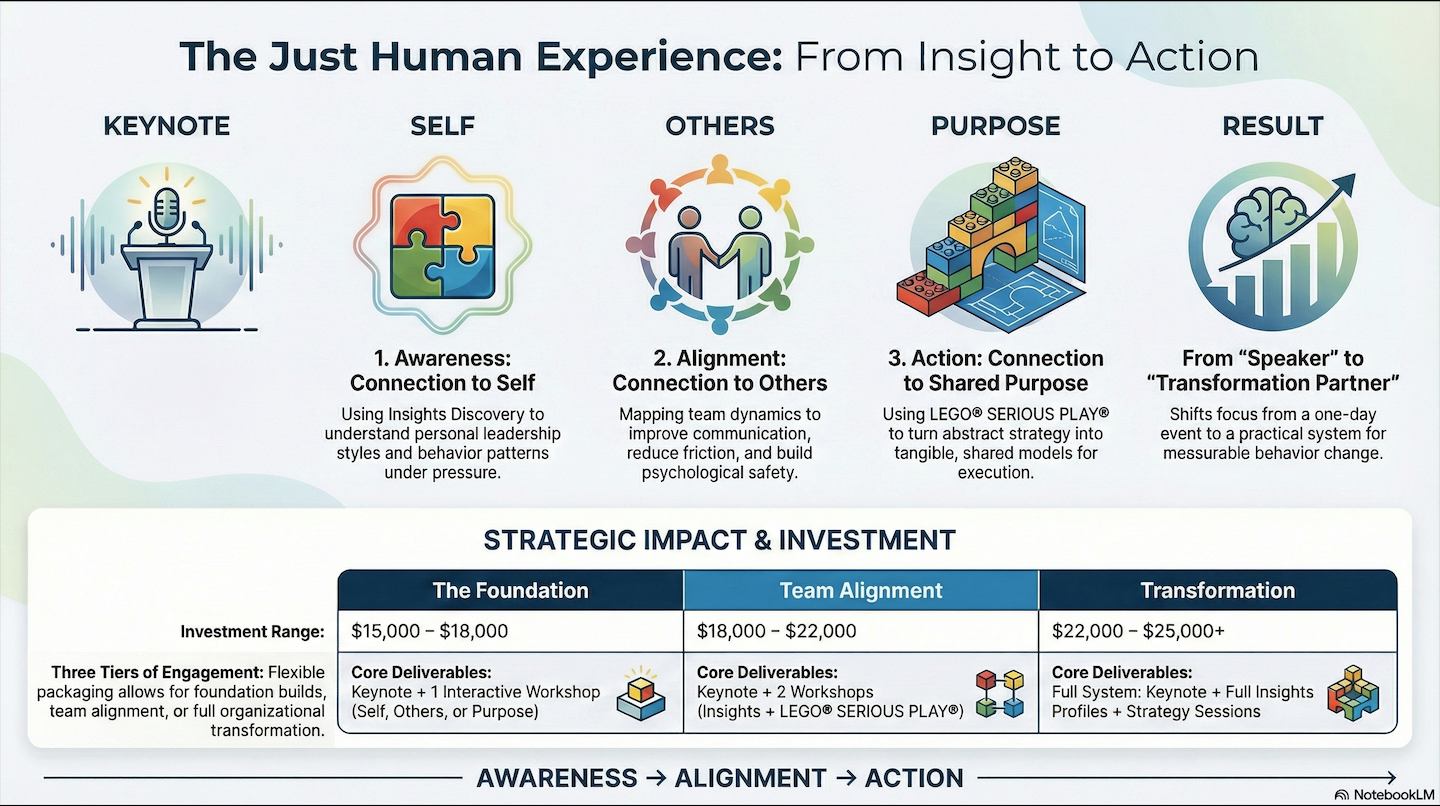 Today, my work as a speaker, coach, and podcast host is centered on helping people reconnect with what matters most in a world that often pulls us away from it. Through keynotes, workshops, conversations, and coaching, I help leaders and audiences explore a simple but powerful idea: before we are titles, roles, opinions, or accomplishments, we are human.